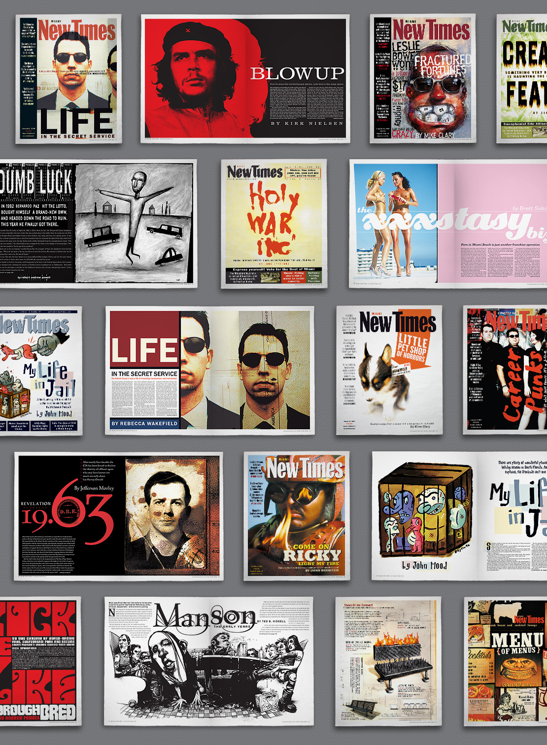As Art Director for the alt-weekly Miami NewTimes, I developed an ability to create visually striking solutions based on impact, concept, and simplicity—while on tight deadlines and minimal budgets.