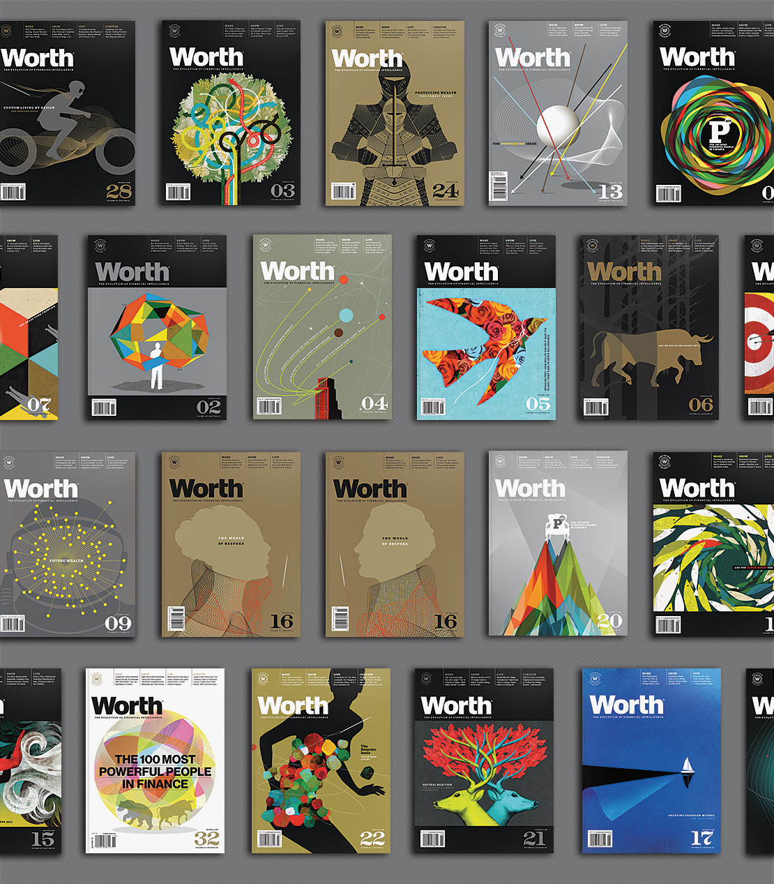The Worth cover series is a collaboration with illustrator Brian Stauffer.